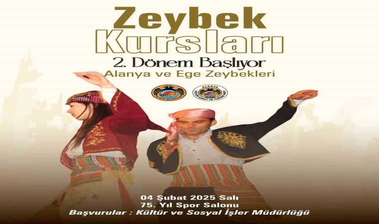 Alanya Belediyesi’nin büyük ilgi gören Alanya ve Ege Yöresi zeybek kurslarının ikinci dönemi 4 Şubat’ta başlıyor. Başvurular Kültür ve Sosyal İşler Müdürlüğü’ne yapılabilecek.