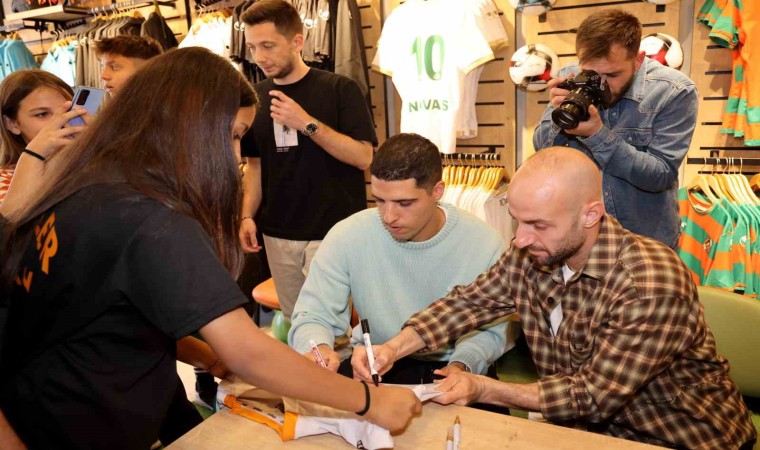 Corendon Alanyasporlu futbolcular Efecan Karaca ve Joao Novais, düzenlenen imza gününde taraftarlarla bir araya geldi.