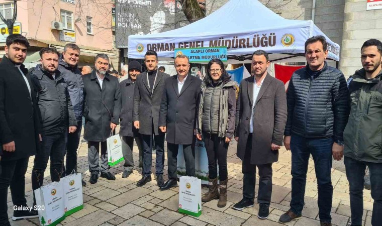 Alaplı Orman İşletme Müdürlüğü ekipleri, 21-26 Mart Orman Haftası dolayısıyla kentin en işlek noktalarından Hükümet Caddesi’nde vatandaşlara fidan dağıttı. Program kapsamında fidanlıklardan getirilen Kızılcık, kiraz, elma, kara yemiş, ıhlamur, fıstık çamı fidanları vatandaşlara ücretsiz olarak verildi. Ekinliğe, Alaplı Ak Parti Belediye Başkan Adayı Recep Ocak ve siyasiler de katıldı.