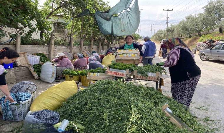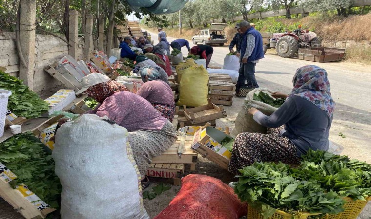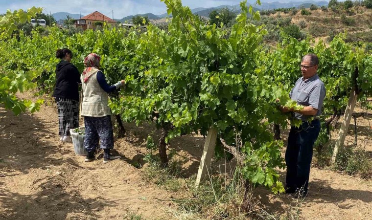 Alaşehir’de Sultaniye üzümünde hasat dönemi yaklaşırken, üreticiler topladıkları asma yapraklarıyla günlük ihtiyaçlarını karşılıyor. Üreticiler, sabahın erken saatlerinde bağlarda topladıkları yaprakları kelter, bez çuvala koyup yaprak alım merkezlerine getiriyor. Burada yaprakları özenle kasalara yerleştiren üreticiler, daha sonra ismini kendilerinin verdiği ’Yaprak Bank’tan paralarını alıp evlerinin yollarını tutuyor. Asma yaprağından günlük ihtiyaçlarını karşıladıklarını belirten üreticiler, yaprağın hasat öncesi kendileri için bir can suyu olduğunu vurguladı.