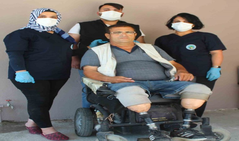 Alaşehir’de diyabet hastalığı nedeniyle her iki ayağı da diz altından kesilen, protez ayak ve tekerlekli araba kullandığı için kendi ihtiyaçlarını karşılamakta zorlanan Adnan Somuncu (55) da belediye tarafından yapılan evde bakım hizmetlerinden yararlanmak ve tıraş olmak için talepte bulundu. Zabıta müdürlüğünü arayıp, talepte bulunan Adnan Somuncu için belediye personeli Kemaliye Mahallesi’ndeki evine gidip, ihtiyaçlarını karşıladı. Özel bir firmada çalışarak emekli olan Adnan Somuncu, "30 yıldır şeker hastasıyım. 2018 yılında bir bacağım, 2020 yılında diğer bacağım diz altından kesildi. Eşimden ayrıldım yaklaşık 15 yıldır tek başıma yaşıyorum. Protez bacaklarımla ve tekerlekli arabamla günlük ihtiyaçlarımı karşılayabiliyorum. Ancak evin badanası, temizlik gibi ağır işleri yapamıyorum. Belediyenin evde bakım hizmeti olduğunu öğrendim. Belediye ekipleri gelip evimin içini dışını badana ettiler, sonra temizlik ekibi geldi, evimin genel temizliğini yaptılar, berber tıraşımı yaptı. Başta Alaşehir Belediye Başkanı Ahmet Öküzcüoğlu olmak üzere tüm ekiplere teşekkür ediyorum, Allah razı olsun” diyerek verilen hizmetin kendi gibi olanlar için büyük bir nimet olduğunu söyledi.