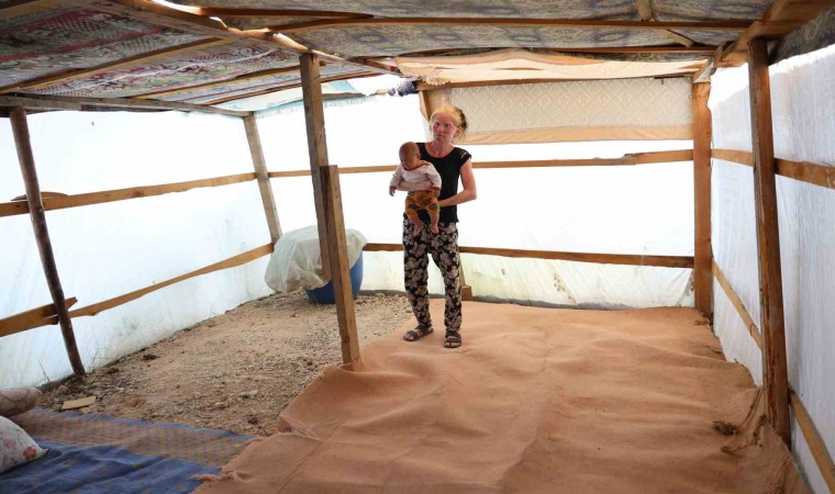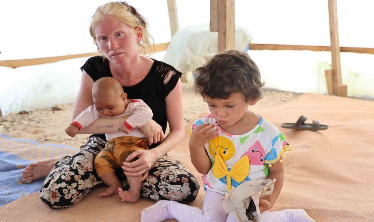 Adana’da ‘Albino’ genç kadın 3 kız çocuğuyla birlikte kavurucu sıcaklarda çadırda kalarak yaşam mücadelesi veriyor.