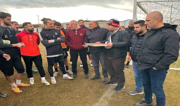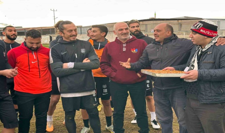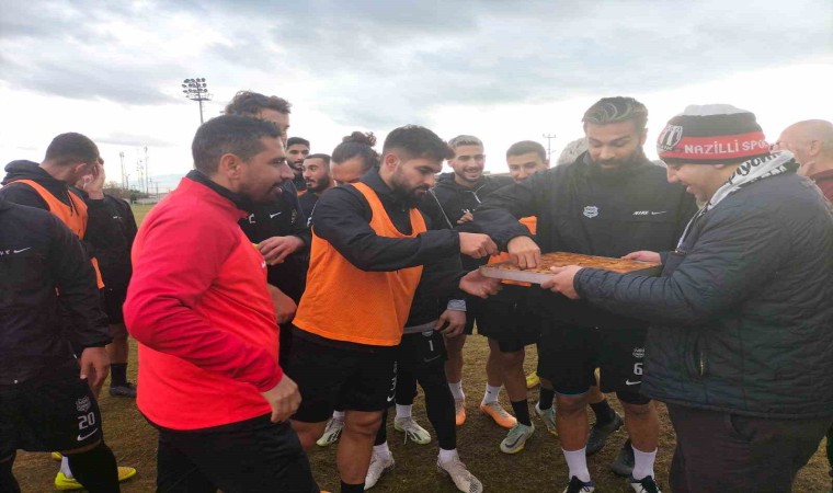TFF 2. Lig ekiplerinden Nazilli Belediyespor’un antrenmanını ziyaret eden alem gençlik taraftar grubu futbolculara baklava ikramında bulundu.
