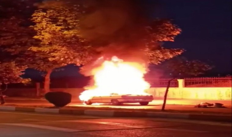 Adıyaman’da seyir halindeki bir otomobil alev alev yanarak kullanılamaz hale geldi. Yanan otomobilde zaman zaman patlamalar meydana geldi.