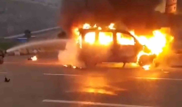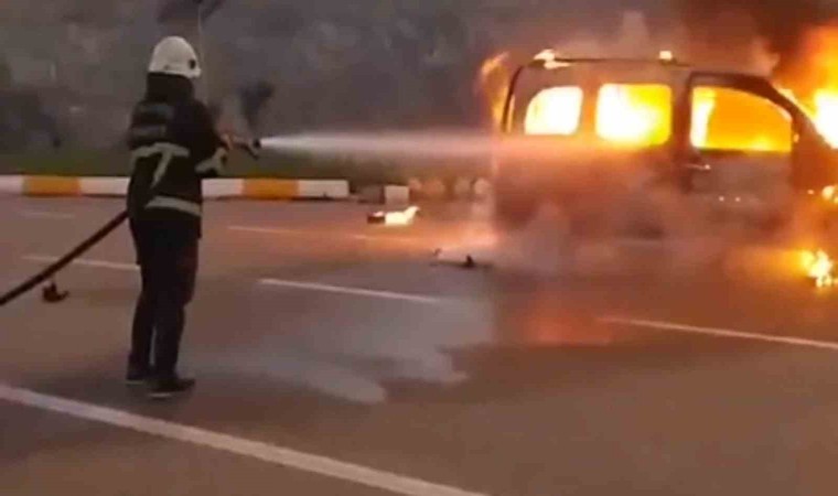 Şanlıurfa’da alev alan hafif ticari araç küle döndü.