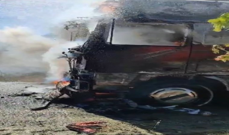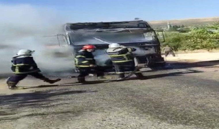 Gaziantep’te alev alan bir tır yanarak kullanılamaz hale geldi.