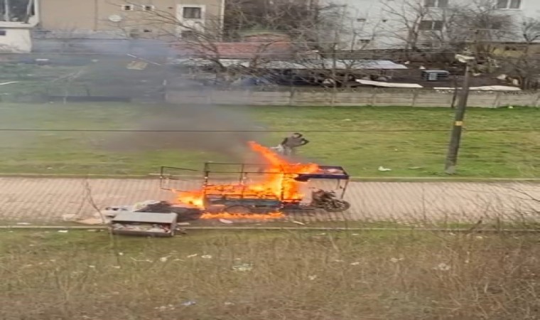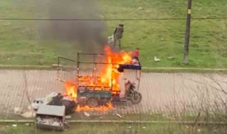 Olay, Fatih Sultan Mahallesi’nde meydana geldi. Edinilen bilgiye göre, topladığı kağıtları geri dönüşüme kazandırarak geçimini sağlayan vatandaşın kullandığı üç tekerlekli motosiklette yangın çıktı. Büyüyen alevler motosikletin tamamına sirayet etti. Kağıt toplayıcısı ise alev alev yanan ekmek teknesini çaresiz gözlerle izledi. 112 Acil Çağrı Merkezine ihbarda bulunulmasıyla adrese itfaiye ve polis ekipleri sevk edildi. İtfaiye ekiplerinin müdahalesiyle yangın söndürülürken, motosiklet kullanılmaz hale geldi. O anlar vatandaşlar tarafından cep telefonu kamerasıyla kaydedildi.