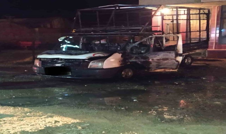 Kastamonu’nun Taşköprü ilçesinde park halindeyken alevlere teslim olan kamyonet kullanılmaz hale geldi.
