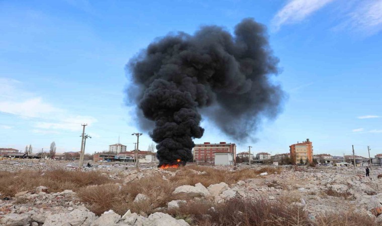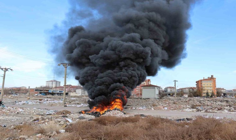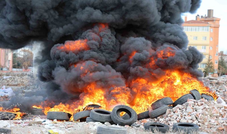 Olay, Aksaray’ın eski sanayi sitesinde yaşandı. Edinilen bilgiye göre, sanayi sitesindeki araziye kimliği belirsiz kişi ya da kişilerce getirilen eski araç lastikleri ateşe verildi. Yanmaya başlayan lastikler adeta alev topuna dönerken, gökyüzüne siyah duman yükseldi. Yangını fark eden devriye görevindeki polis ekipleri çevrede güvenlik önlemi alarak olay yerine itfaiye ekiplerini çağırdı. İtfaiye ekipleri yangına müdahale ederek kısa sürede söndürdü.