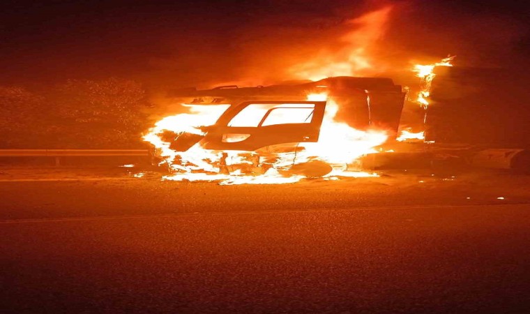 Anadolu Otoyolu İstanbul istikameti Tepetarla mevkiinde seyir eden S.G. idaresindeki muz yüklü 07 BRS 135 plakalı tırın motor kısmı birden alev aldı. Kısa sürede alevler tırı sararken, durumun bildirilmesi üzerine olay yerine itfaiye ekipleri sevk edildi. İtfaiye erleri alev alev yanan tırı söndürmek için seferber olurken, jandarma ekipleri yolu ulaşıma kapattı. Kısa sürede kontrol altına alınan yangın söndürülürken, otoyolun İstanbul istikametinde ulaşım kontrollü olarak sağlandı. Yangının ardından tırın çekici bölümünden geriye demir yığını kaldı.