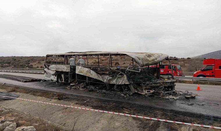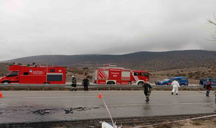 Çorum’da demir yüklü kamyona arkadan çarparak alevlere teslim olan otobüsteki 2 kişi öldü, 5 kişi yaralandı. Alev alev yanan otobüsten geriye ise iskeleti kaldı.
