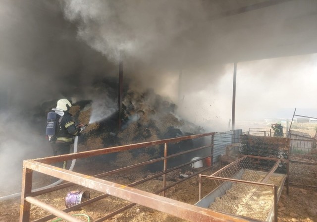 Alev alev yanan samanlıkta binlerce liralık zarar oluştu