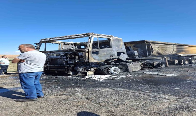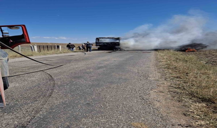 Sivas’ın Hafik ilçesinde alevlere teslim olan kamyon yanarak adeta kül oldu.