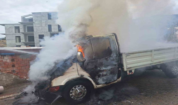 Balıkesir’in Edremit ilçesinde alev topuna dönen kamyonet itfaiye tarafından söndürüldü.