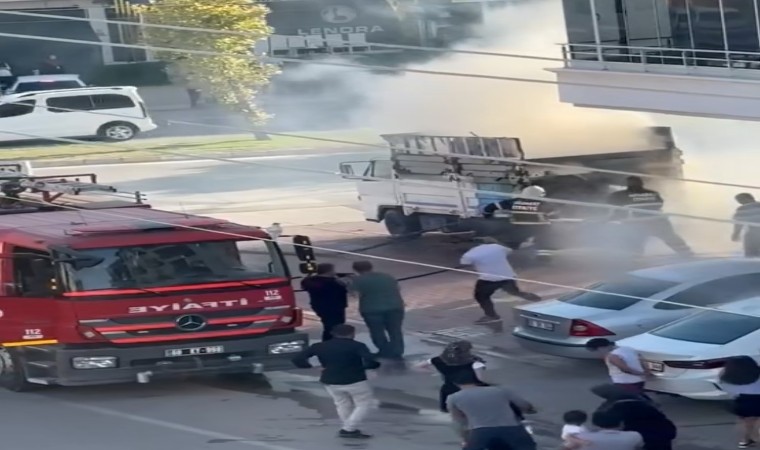 Aksaray’da kasasındaki geri dönüşüm kağıtları tutuşan kamyonet adeta alev topuna dönerken o anlar vatandaşların cep telefonu kamerasıyla anbean görüntülendi.