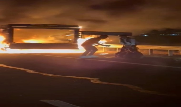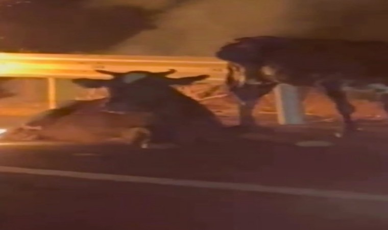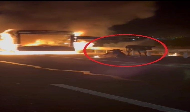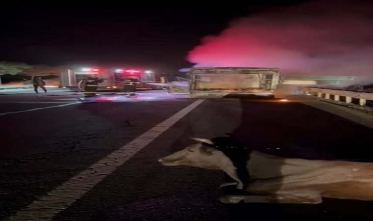 Diyarbakır’ın Çınar ilçesinde seyir halindeyken alevlere teslim olan kamyonet yanarken, kamyonetin arkasında ise inekler istifini bozmadan oturdu. O anlar vatandaşın cep telefonu kamerasına yansıdı.