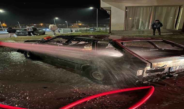 Sivas’ta alev alan otomobil yanarak kullanılamaz hale geldi.