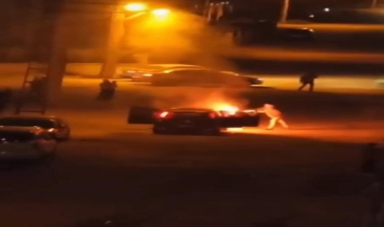 Batman’da seyir halindeyken alev topuna dönen aracın sürücüsü canını zor kurtardı. Vatandaşlar, yangını su bidonları söndürmeye çalıştı.