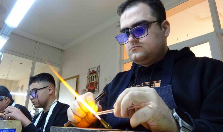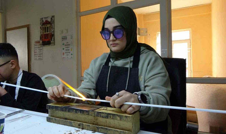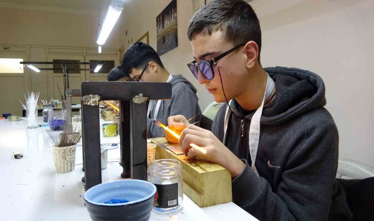 Yozgat’ın Yerköy ilçesinde kurulan zanaat atölyesinde eğitim gören takı imalatı ve kuyumculuk bölümü öğrencileri, yüksek ısıda işledikleri camdan farklı renk ve ebatlarda elde ettikleri boncukları gümüş ile buluşturarak kolye ve bileklik tasarlıyor. Bu ürünler başta ABD olmak üzere birçok Avrupa ülkesine gönderiliyor.