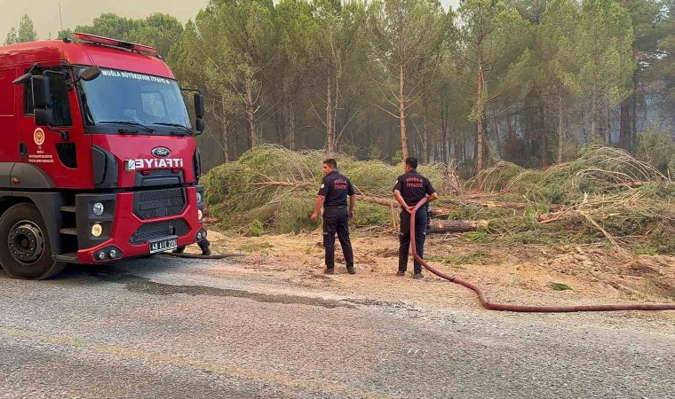Aydın’ın Bozdoğan ilçesinde dün akşam saatlerinde çıkan yangın Muğla sınırına ulaştı. İl sınırında nöbette olan itfaiye ve orman ekipleri alevlerin ilerlemesini durdurmaya çalışırken, iş makineleri ile set oluşturuldu.