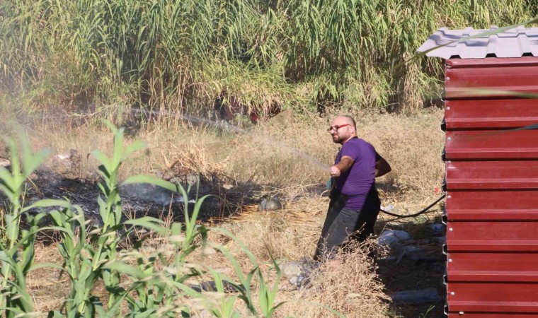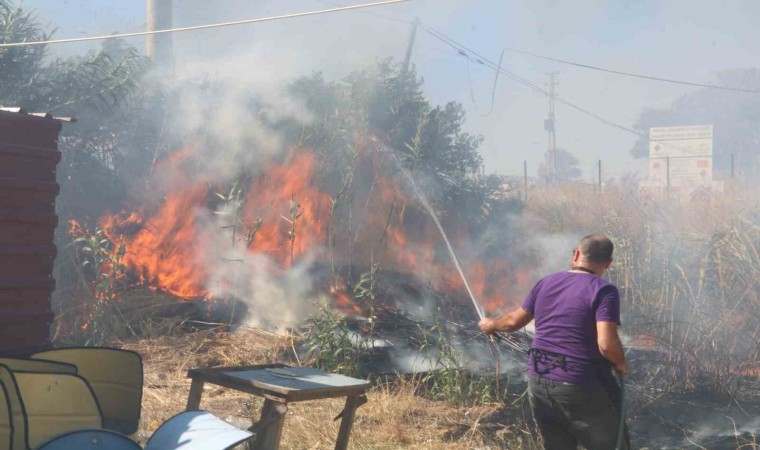 Yangın, Antakya ilçesi Zülfühan Mahallesi’nde meydana geldi. Alınan bilgiye göre, bir bahçede meydana gelen yangın kısa sürede büyüdü. Sazlıkların ve otların alev alev yandığını gören vatandaşlar, çareyi ellerine hortum alarak aradı. Vatandaşlar dakikalarca alevlerin depremzedelerin çadırına ve çevrede bulunan fabrikaya sıçramaması için mücadele etti. Yaklaşık 10 dakika süren mücadelenin ardından alevler kontrol altına alındı.