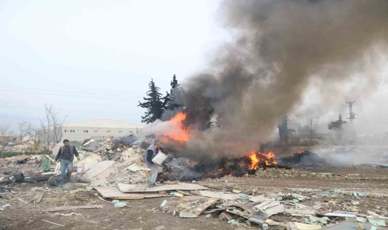 Hatay’da hafriyat atıklarının bulunduğu alanda çıkan yangın, vatandaşlar tarafından kovalarla su taşınarak söndürüldü.