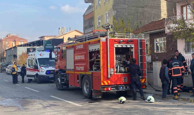 Çankırı’da çıkan yangında alevlere teslim olan apartman dairesi kullanılmaz hale geldi.