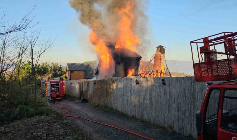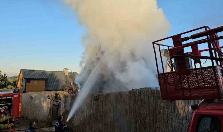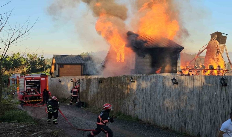 Sakarya’nın Sapanca ilçesinde çıkan yangında alevlere teslim olan bungalov kül oldu.