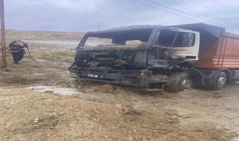 Çankırı’da alevlere teslim olan kamyon kullanılamaz hale geldi.