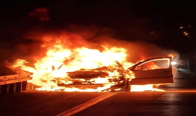 Elazığ’da gece saatlerinde alev alev yanan otomobil küle döndü.