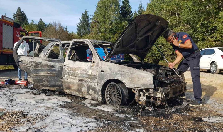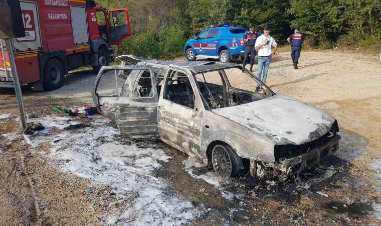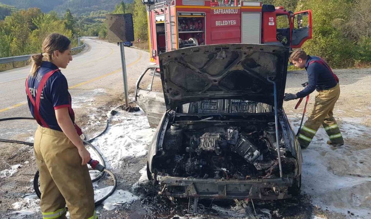 Karabük’ün Safranbolu ilçesinde seyir halindeyken motor kısmından alev alan otomobil kullanılamaz hale geldi.