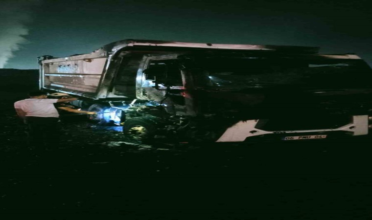 Kastamonu’da seyir halindeyken alevlere teslim olan talaş yüklü kamyon kullanılmaz hale geldi.