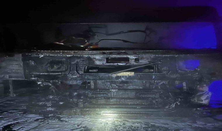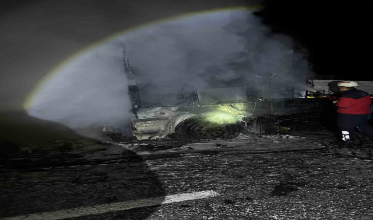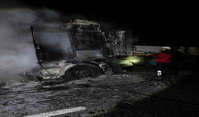 Bolu’da D-100 kara yolunda alevlere teslim olan tırın kabin kısmı küle döndü.