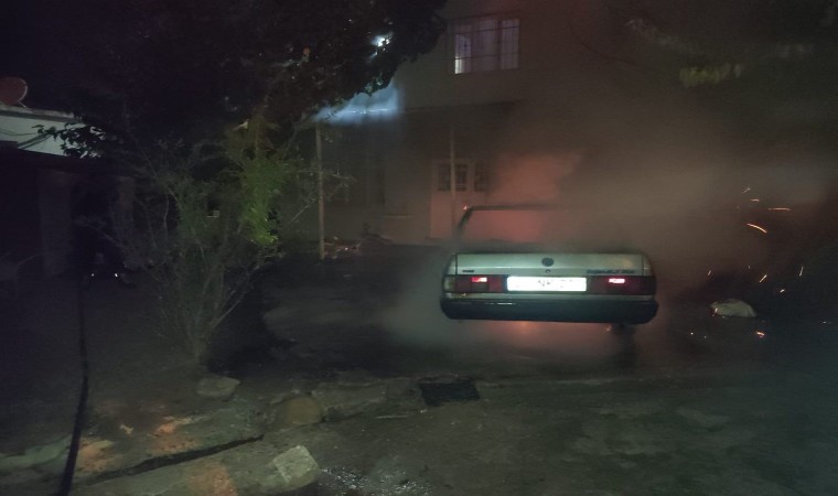 Hatay’da park halindeyken alevlere teslim olan TOFAŞ kullanılmaz hale geldi.