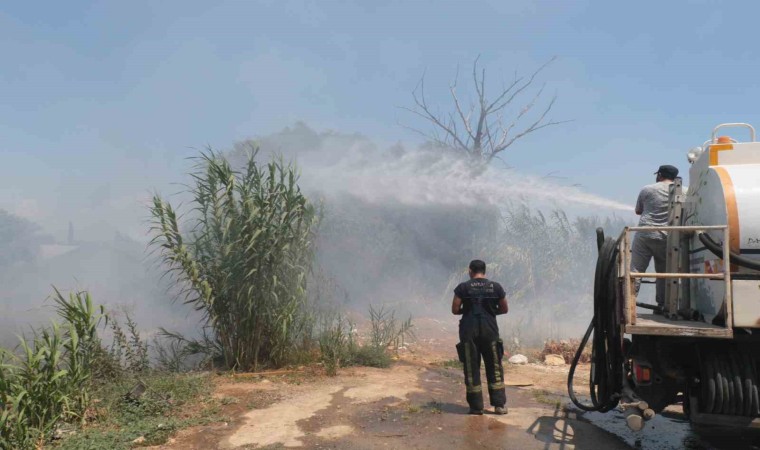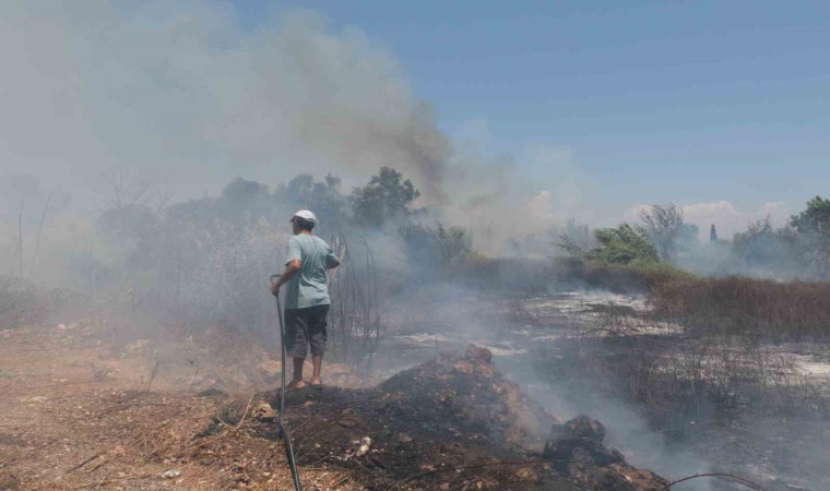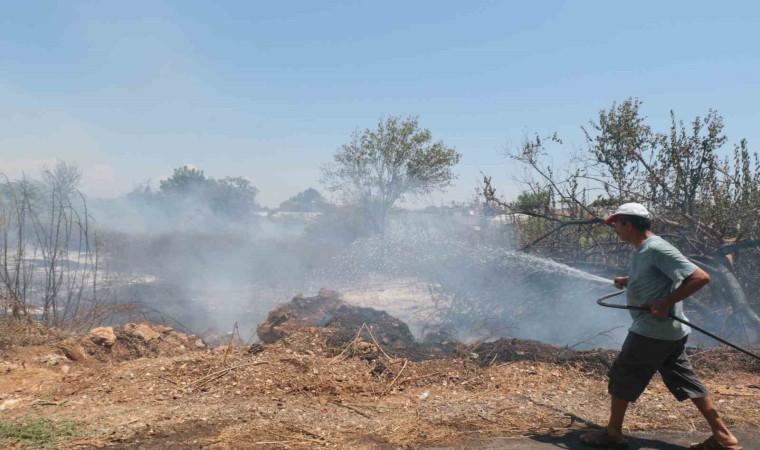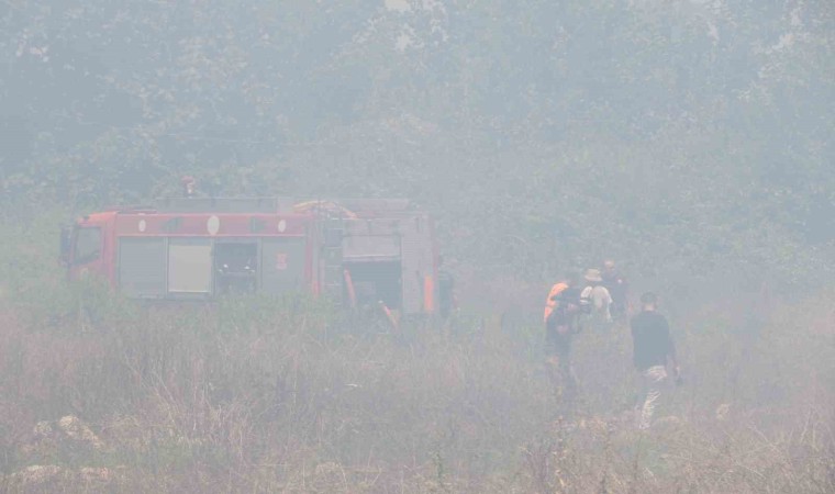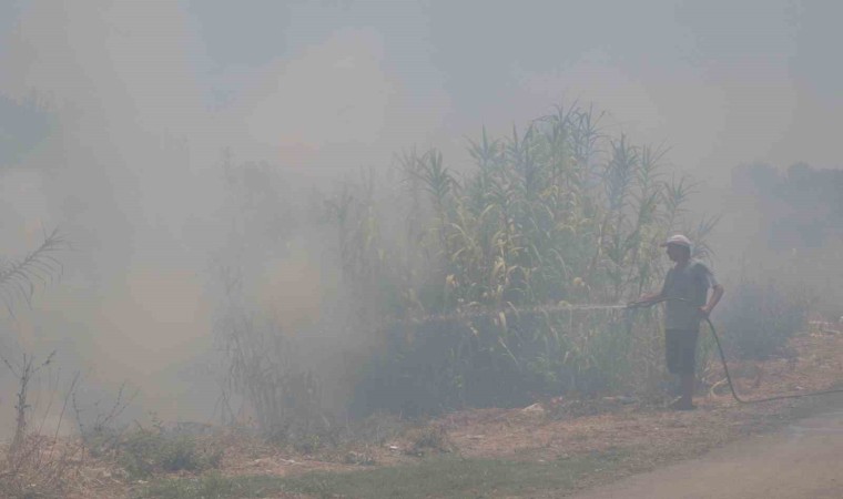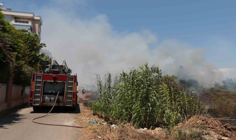 Antalya’da sera ve ikametlere yakın otluk ve ağaçlık alanda çıkan yangına müdahale eden bir itfaiye eri, bir ara alevlerin arasında kalmasına rağmen canını hiçe sayarak yangını söndürmek için büyük gayret harcadı.