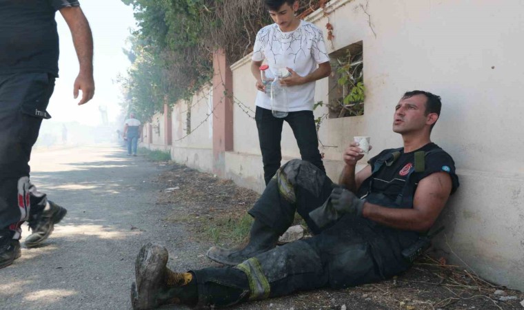 Antalya’nın Muratpaşa ilçesi Doğuyaka Mahallesi 1220 Sokak üzerinde bulunan otluk ve ağaçlık alanda bilinmeyen bir nedenle yangın başladı. İtfaiyeye haber verilmesi üzerine olay yerine gelen ekipler müdahale ettiği sırada kuvvetli rüzgar nedeniyle alevler bir anda geniş bir alanı kapladı. İkamet ve seralara yakın alanda yangının önünü kesmeye çalışan bir itfaiye eri bir ara alevlerin arasında kaldı. Alevlere aldırış etmeden yangına müdahale eden itfaiye erinin o anları bir vatandaşın çektiği cep telefonu görüntüsüne yansıdı. Takviye ekiplerin gelmesi ile yangın kontrol altına alınırken yorgun bir şekilde duvar dibine çöken itfaiye erine vatandaşlar su getirdi.