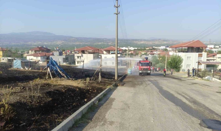 Denizli’de boş arazide çıkan yangında alevlerin etrafını sardığı kümesteki tavukları kurtarmak isteyen kadın yanarak yaralandı.