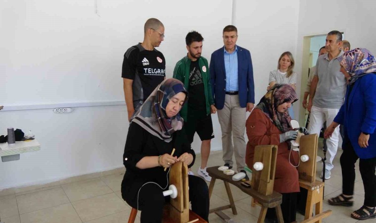 2024-2025 sezonu hazırlık çalışmalarını Burdur’da gerçekleştiren Antalyaspor’da teknik direktör Alex de Souza, kendisine el dikimi top hediye eden kadınların top dikim atölyesine gelerek incelemelerde bulundu.