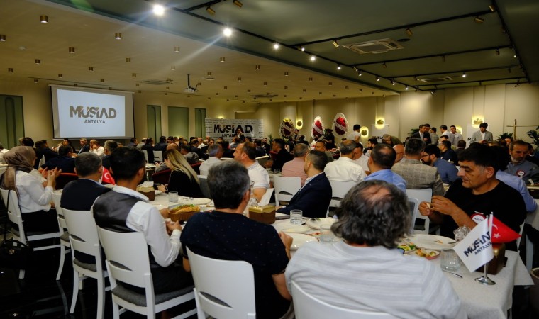 MÜSİAD Antalya’nın düzenlediği Dost Meclisi toplantısının onur konuğu Antalya Valisi Hulusi Şahin oldu. MÜSİAD Antalya Şube Başkanı Ali Akçay toplantıda yaptığı konuşmada iş dünyasının sorunları ve çözüm önerilerine değindi. Ülkede personel ve finansa ulaşım konusunda iki önemli sorun olduğunu vurgulayan Akçay, "Üretim ve ihracat odaklı bir ülke konumuna gelmek için MÜSİAD Antalya olarak her türlü çalışmaya ihtiyaç halinde maddi ve manevi destekçi olmaya hazırız" dedi.