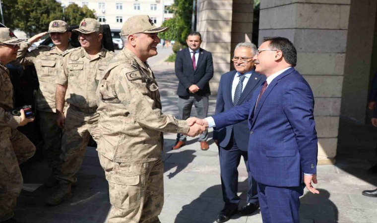 Bir dizi temaslarda bulunmak üzere Kayseri’ye gelen Jandarma Genel Komutan Yardımcısı Orgeneral Ali Çardakcı, İl Jandarma Komutanı Tuğgeneral Yüksel Yiğit ile beraber Kayseri Valisi Gökmen Çiçek’i makamında ziyaret etti. Büyükşehir Belediye Başkanı Memduh Büyükkılıç ile beraber Çardakcı’yı valilik girişinde karşılayan Vali Çiçek, heyet ile bir süre görüştü.