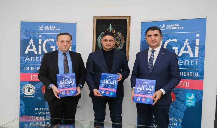 Halen yılda 15 bin tarih ve arkeoloji meraklısının ziyaret ettiği Aliağa-Manisa sınırında bulunan Aigai Antik Kentinde, devam eden arkeolojik kazıların desteklenmesini içeren protokol; Aliağa Belediyesi, Manisa İl Kültür ve Turizm Müdürlüğü ve Aigai Kazı Başkanlığı arasında imzalandı. Aliağa Belediyesi başkanlık makamında gerçekleşen protokol imza törenine; Aliağa Belediye Başkanı Serkan Acar, Manisa İl Kültür ve Turizm Müdürü İbrahim Sudak ve Aigai Arkeolojik Kazı Başkanı, Celal Bayar Üniversitesi Fen-Edebiyat Fakültesi Arkeoloji Bölümü Öğretim Üyesi Prof. Dr. Yusuf Sezgin katıldı.