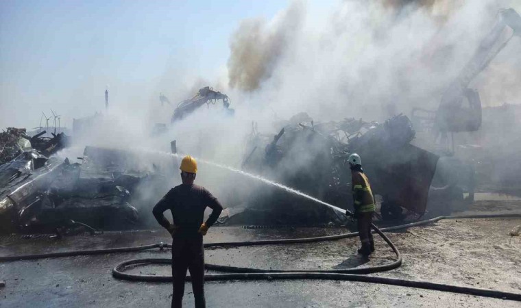 İzmir’in Aliağa ilçesinde bir işletmeye ait hurda depolama alanında çıkan yangın itfaiye ekipleri tarafından kısa zamanda söndürüldü.