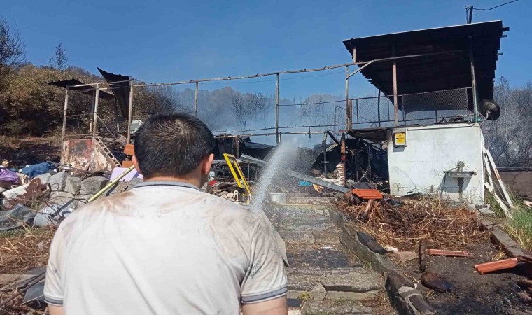 Yerleşim yerindeki alevler, ekiplerin hızlı müdahalesi sonucu etkisiz hale getirilirken şiddetli rüzgar sebebiyle yön değiştiren yangını söndürme çalışmaları sürüyor.