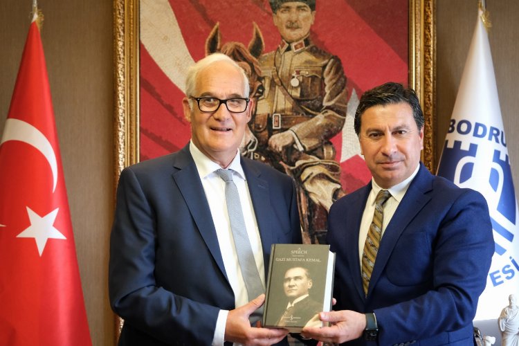 Almanya Federal Cumhuriyeti İzmir Başkonsolosu Dr. Detlev Wolter, Bodrum Belediye Başkanı Ahmet Aras’ı makamında ziyaret etti.MUĞLA (İGFA) - Bodrum Belediyesi Başkanlık Makamında gerçekleşen ziyarete Almanya Federal Cumhuriyeti Muğla Fahri Konsolosu Gülay Kaman Kaplan da eşlik ederken Başkan Aras, ziyarette Başkonsolos Dr. Wolter’a Bodrum tarihi ve ekonomik geçmişi hakkında bilgiler verdi.