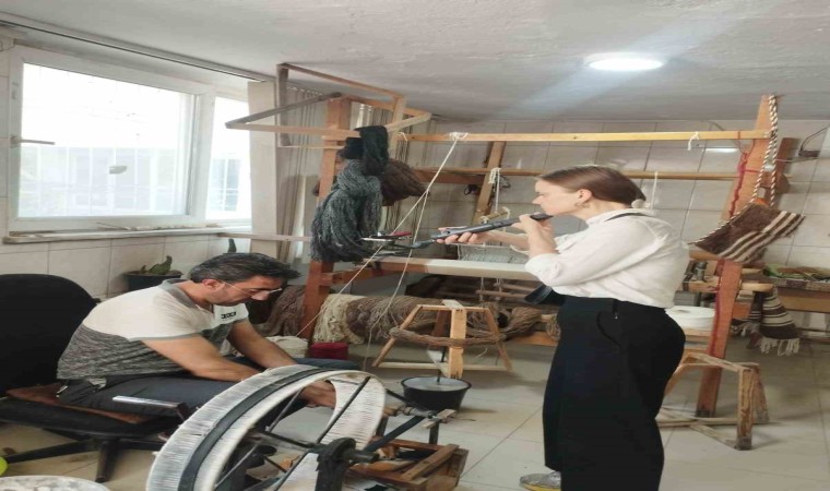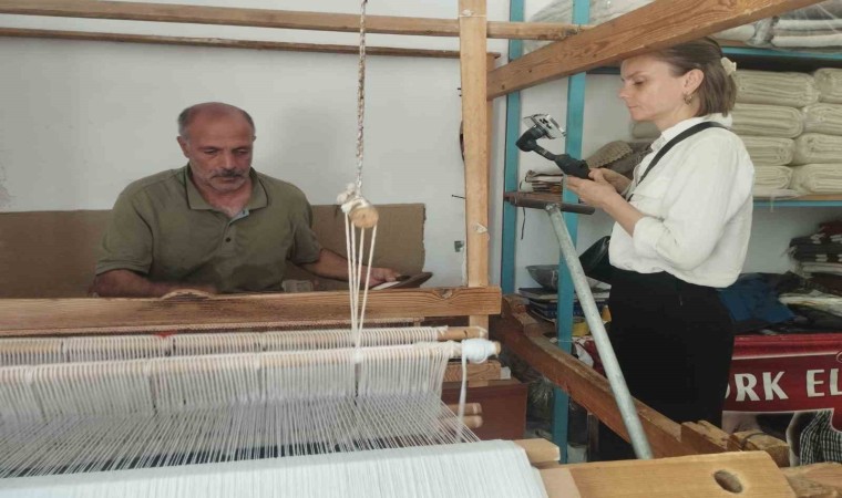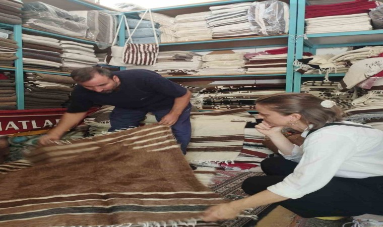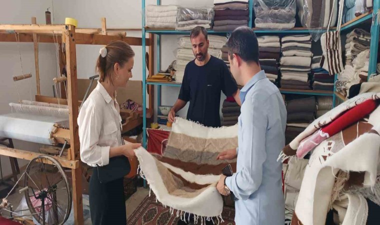 Almanya’dan Siirt’te gelen moda tasarımcısı Julia Von Leliwa, tiftik battaniyesi ile ilgili incelemelerde bulunarak, Siirt battaniyesi dokuma ustalarından battaniyelerin yapılışı hakkında bilgi aldı.
