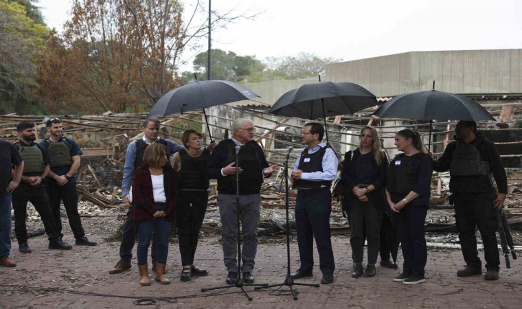 Almanya Cumhurbaşkanı Frank-Walter Steinmeier ve eşi, İsrail’i ziyaret etti. İsrail Cumhurbaşkanı Herzog ile bir araya gelen Steinmeier, çatışmalardan etkilenen Kibbutz Be’eri’yi ziyaret etti. Herzog ve Steinmeier’in ziyaret sırasında çelik yelek giydiği görüldü. Herzog, Kibbutz Be’eri’deki sanat galerisinin ve kültür merkezinin yeniden inşası için Almanya’nın 7 milyon avro bağışta bulunacağını ifade ederek, Steinmeier’e ve Almanya’ya İsrail’e verdikleri destek için teşekkür etti.