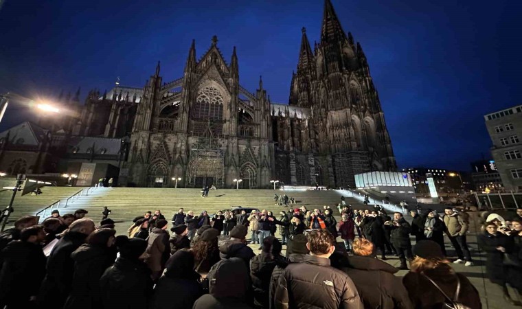 Almanya’nın Köln kentinde tarihi Dom Katedrali önünde 6 Şubat 2023’te Kahramanmaraş merkezli depremlerde hayatını kaybedenler anıldı.