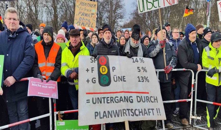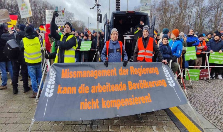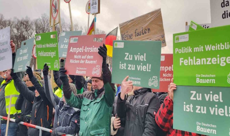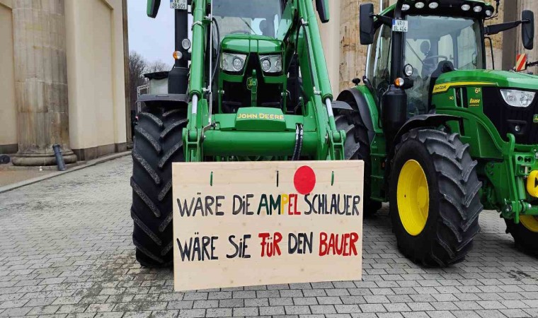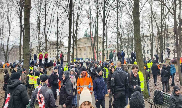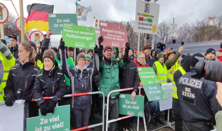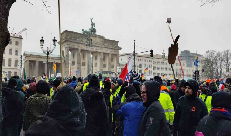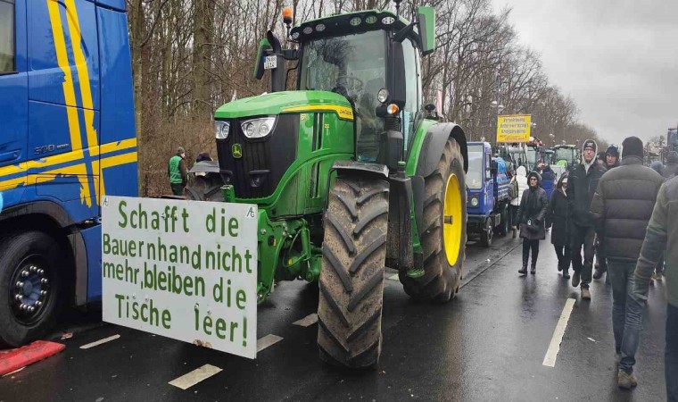 Almanya’da çiftçilerin hükümetin tarımsal sübvansiyonlarını kademeli olarak kaldırma kararına yönelik protestolar devam ediyor. Başkent Berlin’de çiftçiler, traktörleri ile birlikte Brandenburg Kapısı’nın önünde toplandı. Polis şehir merkezine daha fazla traktör alınmayacağını duyururken, çiftçilerin eylemine nakliyeciler başta olmak üzere başka meslek grupları da destek verdi. Çiftçiler, yaklaşık 6 bin araçla 17 Haziran Caddesi’ni ve çevresindeki bağlantı yollarını trafiğe kapattı. Berlin’deki büyük çiftçi eylemleri nedeniyle trafikte aksamalar yaşanırken, özellikle şehir içi otobüs seferleri zamanında yapılamadı. Banliyö tren seferlerinde de aksaklıklar yaşandı.