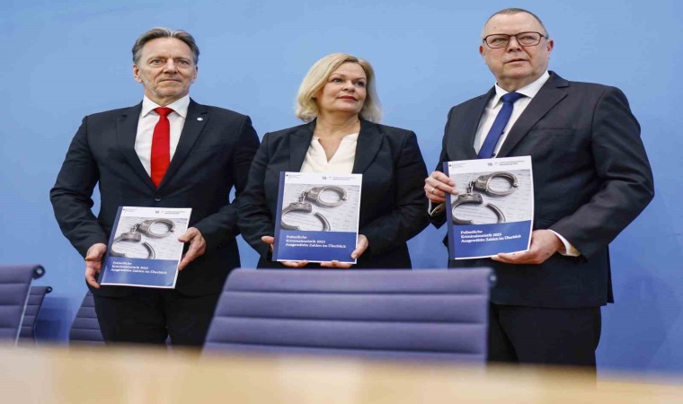 Almanya İçişleri Bakanı Nancy Faeser, 2023 yılı Kriminal Suç İstatistiği Raporu’na yönelik basın toplantısı düzenledi. Başkent Berlin’deki basın toplantısına Brandenburg İçişleri Bakanı Michael Stübgen ve Federal Kriminal Polis Teşkilatı (BKA) Başkanı Holger Münch de katıldı.