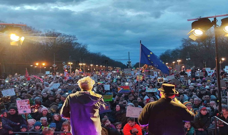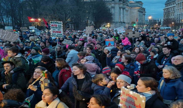 Almanya’da artan ırkçı, faşist ve aşırı sağ eğilimlere karşı protesto gösterisi düzenlendi. “Campact”, ‘Fridays for Future’ ve ‘Parents against the Right’ gibi sivil toplum kuruluşlarının organize ettiği “ışıklı” protesto eylemine her yaş grubundan yaklaşık 100 bin kişi katıldı. Göstericiler, 23 Şubat Pazar günü gerçekleştirilecek Almanya genel seçimleri öncesinde aşırı sağcı Almanya için Alternatif (AfD) Partisi’nin yükselişine dikkat çekmek ve demokrasiyi korumak adına sokaklara çıktıklarını açıkladı. Bazı protestocular yanlarında getirdikleri mum, meşale ve el feneri gibi nesnelerle, bazı protestocular da ışık zinciri ve cep telefonlarının ışıklarıyla gecenin karanlığını aydınlattı. Akşam saatlerinde düzenlenen gösteride sık sık AfD karşıtı sloganlar atıldı.